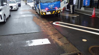 道路上に故障車からガソリンが漏れたとのこと。 緊急要請をちょうだいました。