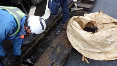↓ 安全を確認できたので側溝蓋を再設置し、完了となります。