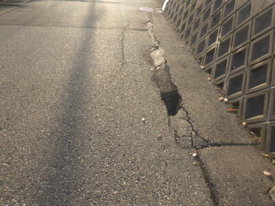 こちらは陥没です。 結構、深くまで落ちてる模様。