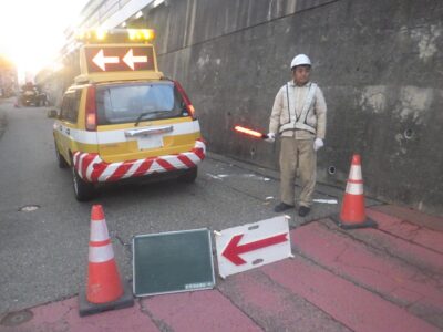 ↓ 道路幅員が狭いため、今回の工事は通行止めになります。