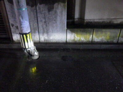 本日は事故により倒された路側標識の撤去工事をさせていただきました。